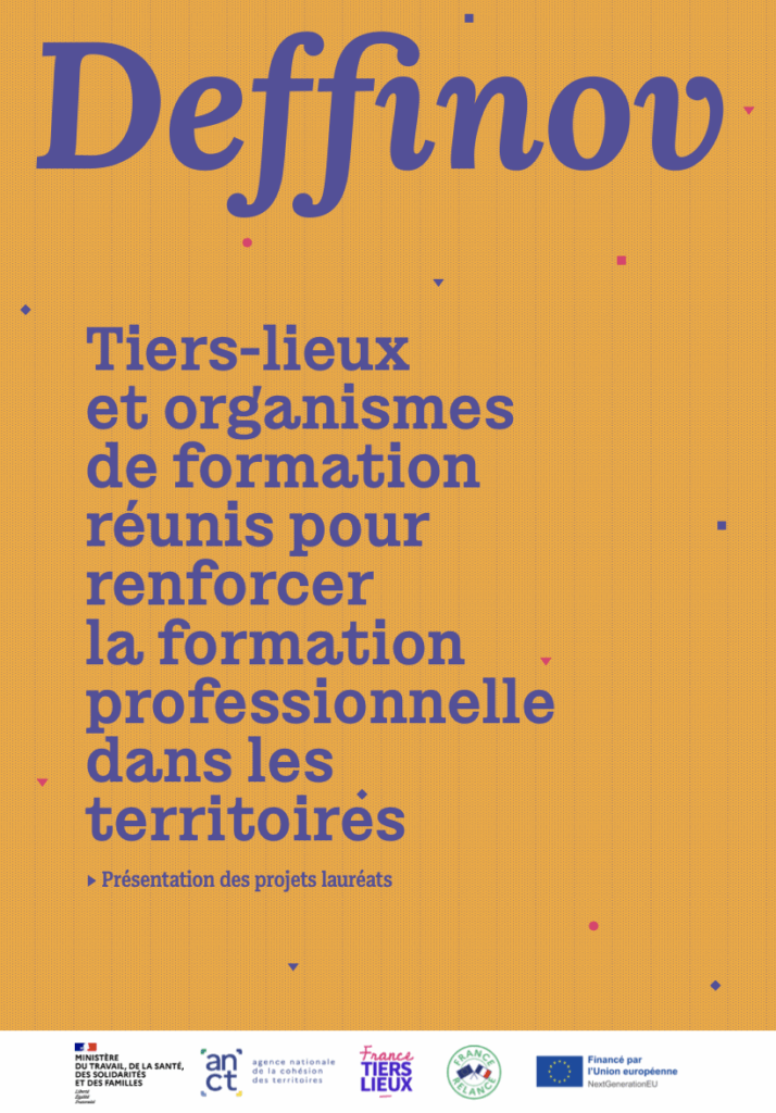 Lancé par le ministère du Travail en collaboration avec l’ANCT et France Tiers-Lieux, DEFFINOV (Développement de la Formation Innovante) vise à rapprocher les écosystèmes de la formation et les tiers-lieux pour proposer plusieurs projets de formation innovants dans les tiers-lieux. L’initiative vise à repenser la formation professionnelle en France, en la rendant plus accessible, innovante (via des approches pratiques, partage des savoirs, mutualisation des ressources..) et en adéquation avec les besoins des territoires et des individus. C’est une formation adaptée aux besoins économiques locaux.